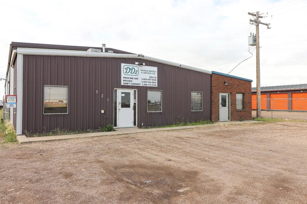 For sale good, solid industrial building measuring 8772 sq. ft., with front office. Office area has 3 offices, and reception area, 2 bathrooms, and coffee room. There is a mezzanine storage area above the office area. Shop area is 126x61`, with two overhead doors at the back of the building. Large back yard for storage, and trucks. Yard is chain link fenced. excellent exposure on main thoroughfare.